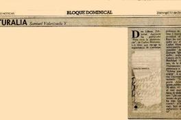 Culturalia [artículo] / Samuel Valenzuela Y. Las Últimas Noticias (Diario : Santiago, Chile)-- octubre 11, 1987, página 40 .