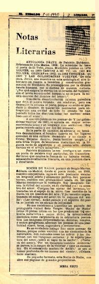 Notas literarias [artículo] / Mesa Seco. El Heraldo. -- noviembre 1, 1987, página 2. .