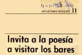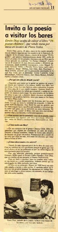 Invita a la poesía a visitar los bares [artículo]. Las Últimas Noticias (Diario : Santiago, Chile)-- enero 4, 1988, página 11. .