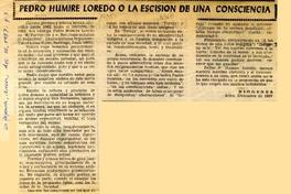 Pedro Humire Loredo o la escisión de una consciencia [artículo] / Diógenes. La Defensa. -- diciembre 10, 1987, página 3. .