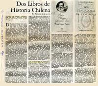 Dos libros de historia chilena [artículo] / Fernando de la Lastra. El Mercurio (Diario : Santiago, Chile)-- febero 28, 1988, página E3 .