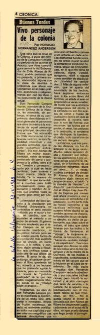Vivo personaje de la Colonia [artículo] Horacio Hernández Anderson.