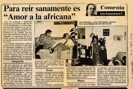 Para reir sanamente es "Amor a la africana" [artículo] / Italo Passalacqua C. La Segunda (Diario : Santiago, Chile) mayo 8, 1986, página 25 .