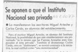 Se oponen a que el Instituto Nacional sea privado [artículo].