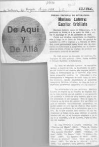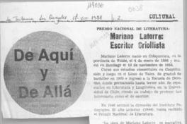 Mariano Latorre, escritor criollista [artículo] / Rosmery. La Tribuna (Diario : Los Angeles, Chile)-- ago. 17, 1988, p. 2. .