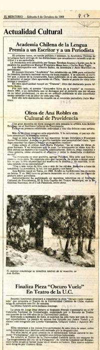Actualidad cultural [artículo] El Mercurio (Santiago) -- oct. 8, 1988, p. C7 .