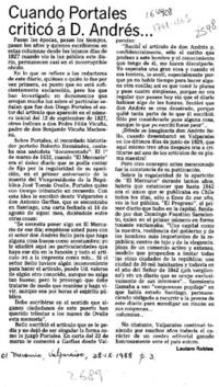 Cuando Portales criticó a D. Andrés -- [artículo] / Lautaro Robles. El Mercurio (Valparaíso). -- sept. 28, 1988, p. 3. .