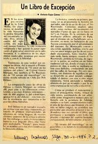 Un libro de excepción [artículo] / Antonio Rojas Gómez. Las Últimas Noticias (Diario : Santiago, Chile)-- mayo 30, 1986, p. 2. .