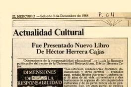 Fue presentado nuevo libro de Héctor Herrera Cajas [artículo]. El Mercurio (Santiago) -- dic. 3, 1988, p. C11 .