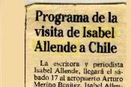 Programa de la visita de Isabel Allende a Chile [artículo].