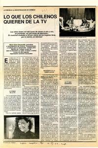 Lo que los chilenos quieren de la TV [artículo]. Fortín Mapocho. -- dic. 16, 1988, p. 2 (suplemento) retr. .
