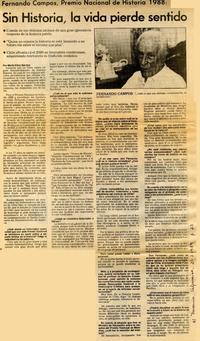 Sin historia, la vida pierde sentido [artículo] / María Elina Barrera. El Mercurio (Valparaíso). -- ene. 21, 1989, p. 23 retr. .