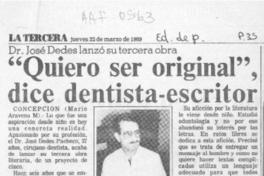 "Quiero ser original" dice dentista-escritor [artículo] / Mario Aravena M. La Tercera. -- Ed. de provincia. -- mar. 23, 1989, p. 35 retr. .