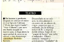 De locuras y perdones [artículo]. VM. -- no. 19 (mayo 1989) p. 35 .