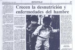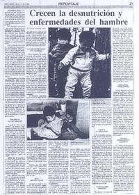 Crecen la desnutrición y enfermedades del hambre [artículo] / Sergio Gutiérrez Patri. Fortín Mapocho. -- jun. 3, 1989, p. 21 retr. .
