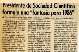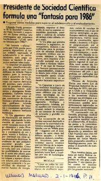Presidente de Sociedad Científica formula una "fantasía para 1986" [artículo].