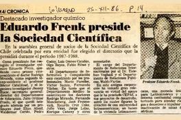 Eduardo Frenk preside la Sociedad Científica [artículo]. La Tercera. -- dic. 25, 1986, p. 14 retr. .