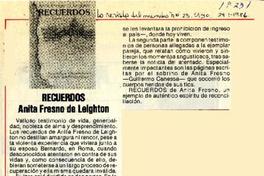 Materias: FRESNO DE LEIGHTON, ANITA - RECUERDOS