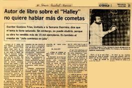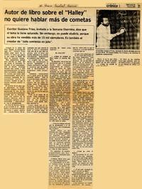 Autor de libro sobre el "Halley" no quiere hablar más de cometas [artículo]. El Diario Austral (Osorno). -- mar. 26, 1986, p. 21 retr. .