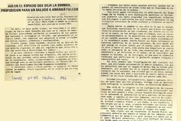 Ahí en el espacio que deja la sombra, proposición para un saludo a Amanda Fuller [artículo] / Carlos René Correa. Cauce (Chillán). -- no. 58, 1986, p. 39-40 .