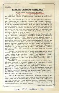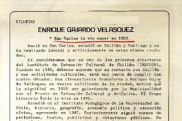 Enrique Gajardo Velásquez [artículo] / Carlos René Ibacache. Cauce (Chillán). -- no. 58, 1986, p. 2. .