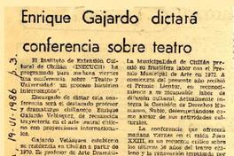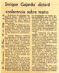Enrique Gajardo dictará conferencia sobre teatro [artículo]. La Discusión. -- jun. 19, 1986, p. 3. .