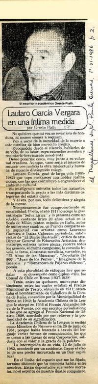Lautaro García Vergara en una íntima medida [artículo] Oreste Plath.