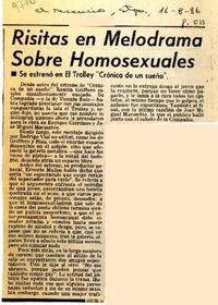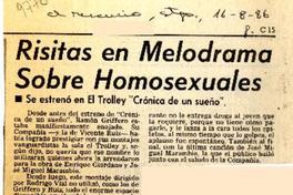 Risitas en melodrama sobre homosexuales [artículo]. El Mercurio (Santiago). -- ago. 16, 1986, p. C15 .