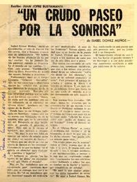 "Un crudo paseo por la sonrisa" [artículo] / Juan Jofré Bustamante. La Prensa (Curicó). -- dic. 10, 1986, p. 5. .