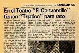 En el teatro "El Conventillo" tienen "Tríptico" para rato [artículo]. La Tercera. -- abr. 1, 1986, p. 35 .