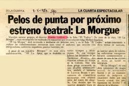 Pelos de punta por próximo estreno teatral, "La Morgue" [artículo]. La Cuarta (Diario : Santiago, Chile)-- oct. 8, 1986, p. 20. .