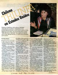 Chilena triunfa en Estados Unidos [artículo] / Ruby Weitzel. La Tercera. -- ago. 3, 1986, p. 11 (suplemento) retr. .
