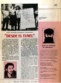 "Desde el túnel" [artículo]. Cauce (Santiago). -- no. 68 (mar. 31, 1986) p. 43 retr. .