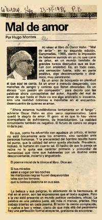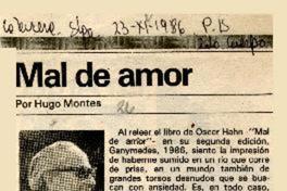 Mal de amor [artículo] / Hugo Montes. La Tercera. -- nov. 23, 1986, p. 15 (segundo cuerpo) retr. .
