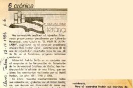 Actualidad literaria [artículo] / Jamota. El Claro. -- feb. 15, 1986, p. 6. .