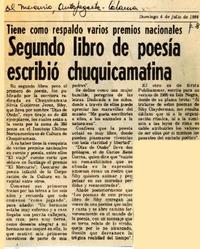 Segundo libro de poesía escribió chuquicamatina [artículo].