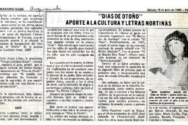 "Días de otoño", aporte a la cultura y letras nortinas [artículo].