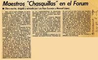 Maestros "chasquillas" en el Forum [artículo]. El Mercurio (Santiago). -- abr. 5, 1986, p. C15 .