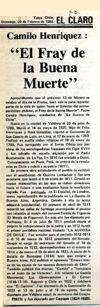 "El Fray de la buena muerte" [artículo]. El Claro. -- feb. 9, 1986, p. 6. .