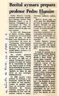 Recital aymara prepara profesor Pedro Humire [artículo]. La Estrella de Arica. -- oct. 25, 1989, p. 4. .