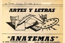"Anatemas" [artículo] / Juan Jofré Bustamante. La Prensa (Curicó). -- mayo 7, 1986, p. 5. .