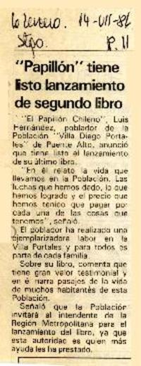 "Papillón" tiene listo lanzamiento de segundo libro [artículo]. La Tercera. -- jul. 14, 1986, p. 11 .