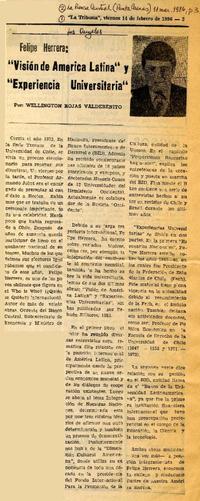 Materias: Herrera, Felipe - "Experiencia universitaria" - Visión de América Latina