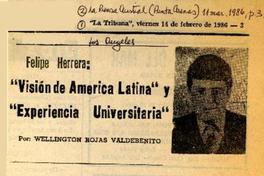 "Visión de América Latina" y "Experiencia universitaria" [artículo] Wellington Rojas Valdebenito.