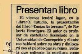Presentan libro [artículo]. El Sur (Diario : Concepción, Chile)-- sept. 11, 1989, p. 2. .