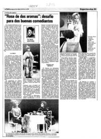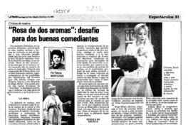 "Rosa de dos aromas", desafío para dos buenas comediantes [artículo] / Yolanda Montecinos. La Nación (Diario : Santiago, Chile)-- ene. 13, 1990, p. 31. .