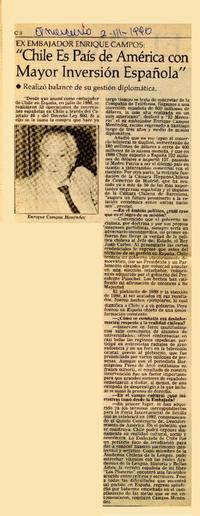 "Chile es país de América con mayor inversión española" [artículo]. El Mercurio (Santiago). -- mar. 2, 1990, p. C2 retr. .