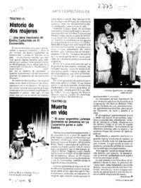 Historia de dos mujeres - Muerte en vida [artículo] / Hans Ehrmann. Ercilla. -- no. 2847 (feb. 21, 1990) p. 24 retr. .
