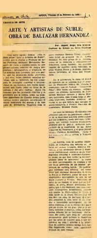 Arte y artistas de Ñuble, obra de Baltazar Hernández [artículo] Miguel Angel Roa Rioseco.