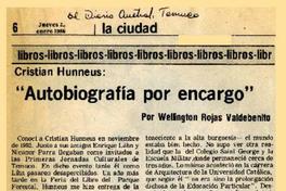 Cristián Huneeus, "Autobiografía por encargo" [artículo] Wellington Rojas Valdebenito.